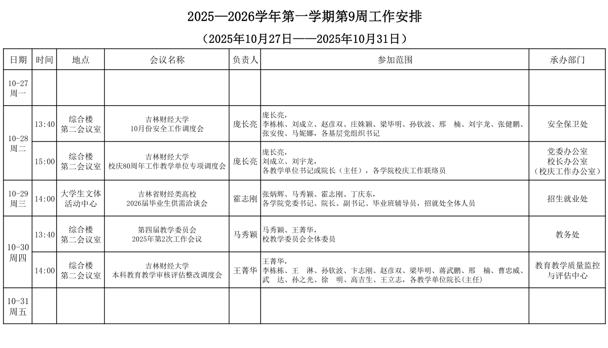 下一篇:吉林财经大学2025-2026学年第一学期第8周工作安排