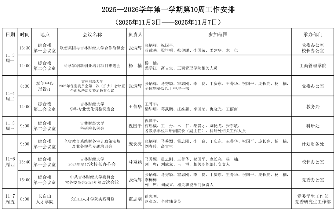 下一篇:吉林财经大学2025-2026学年第一学期第9周工作安排