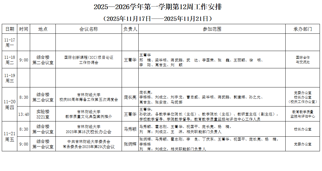下一篇:吉林财经大学2025-2026学年第一学期第11周工作安排