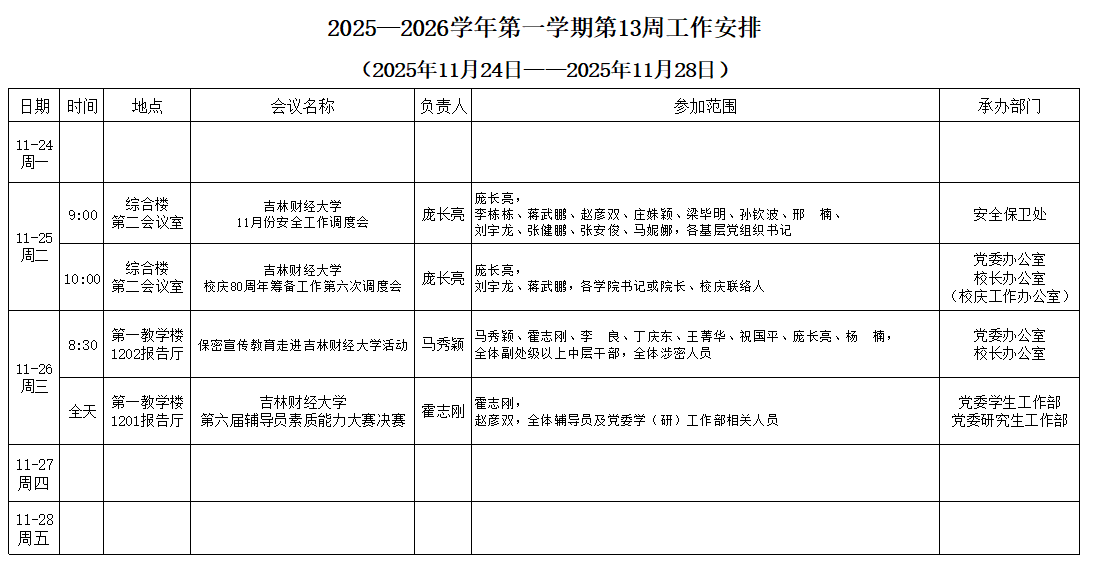 下一篇:吉林财经大学2025-2026学年第一学期第12周工作安排