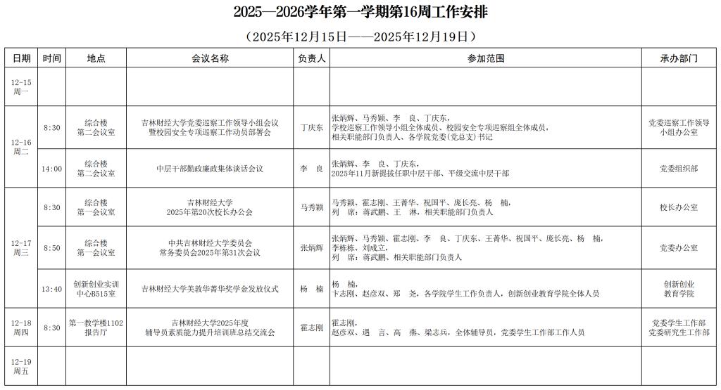 下一篇:吉林财经大学2025-2026学年第一学期第15周工作安排