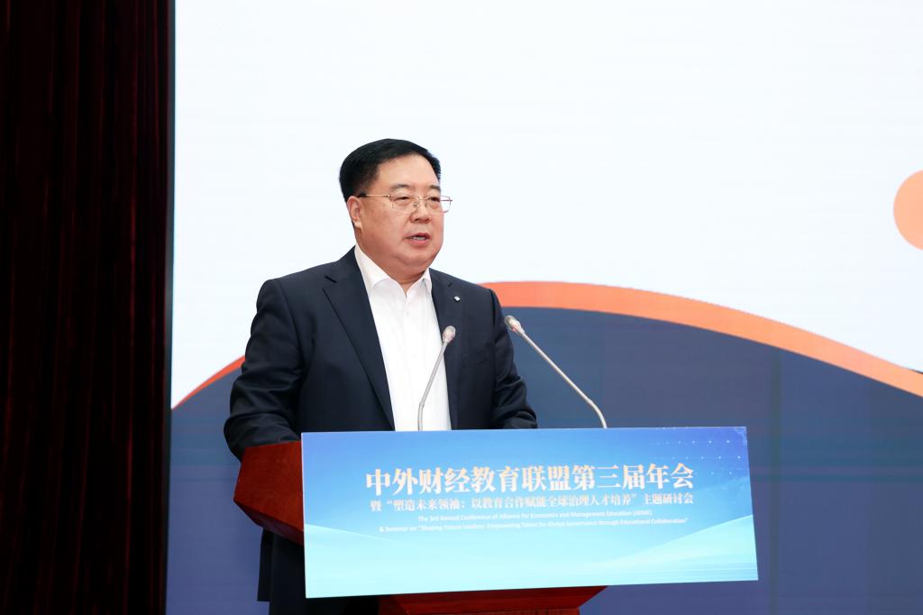 中央财经大学校长马海涛、西南财经大学校长李永强、浙江工商大学校长王永贵、中南财经政法大学副校长刘仁山、对外经济贸易大学副校长陈德球等高校领导分别围绕财经大学高质量发展、深耕国际合作、学科交叉与产教融合以及联盟合力教育赋能等作精彩主旨发言。